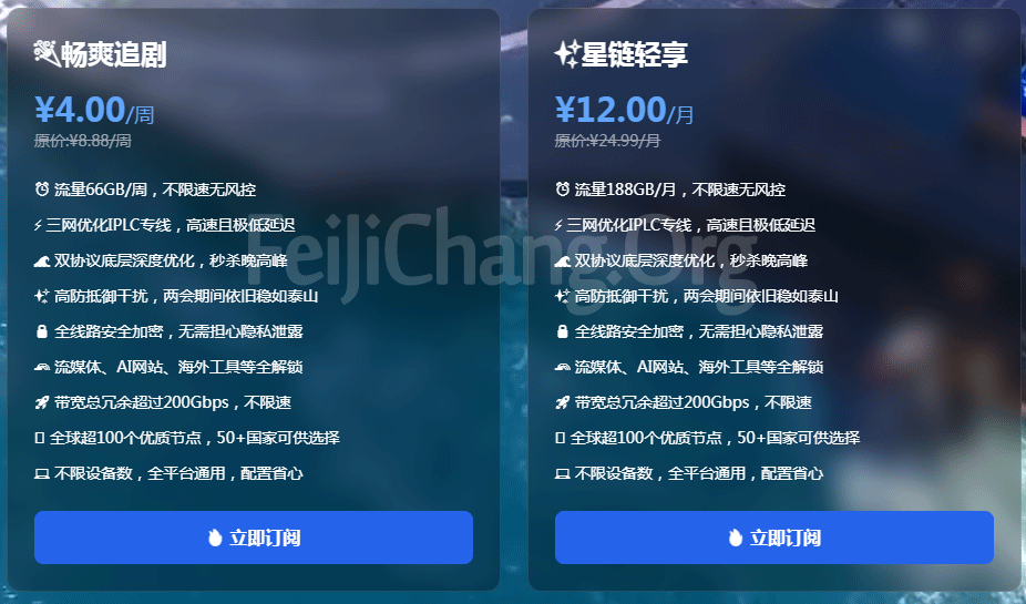 [星链机场]月付12元188G流量 不限速无风控