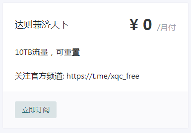 [XQC免费机场]0元购买10TB流量月付套餐