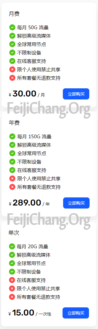 [白猫云]单次15元20G流量 全球节点不限制设备