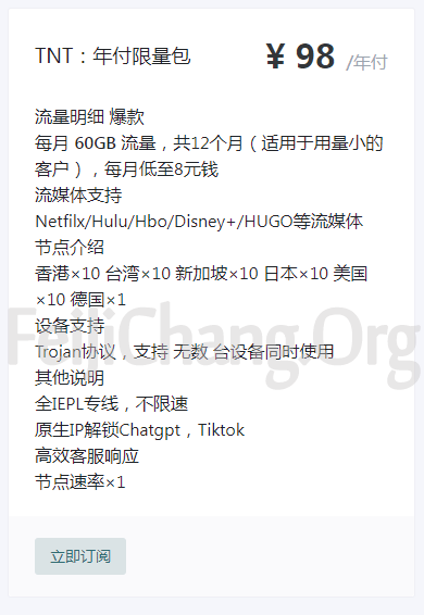 [TNTCloud]年付98元60G流量 原生IP解锁Chatgpt,Tiktok