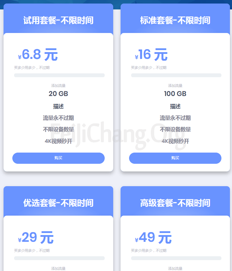 [网际快车]月付6.8元20G流量 流量永不过期 不限设备数量 4K视频秒开