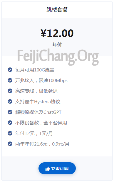 [超悦]年付12元100G流量 最牛Hysteria协议不限设备